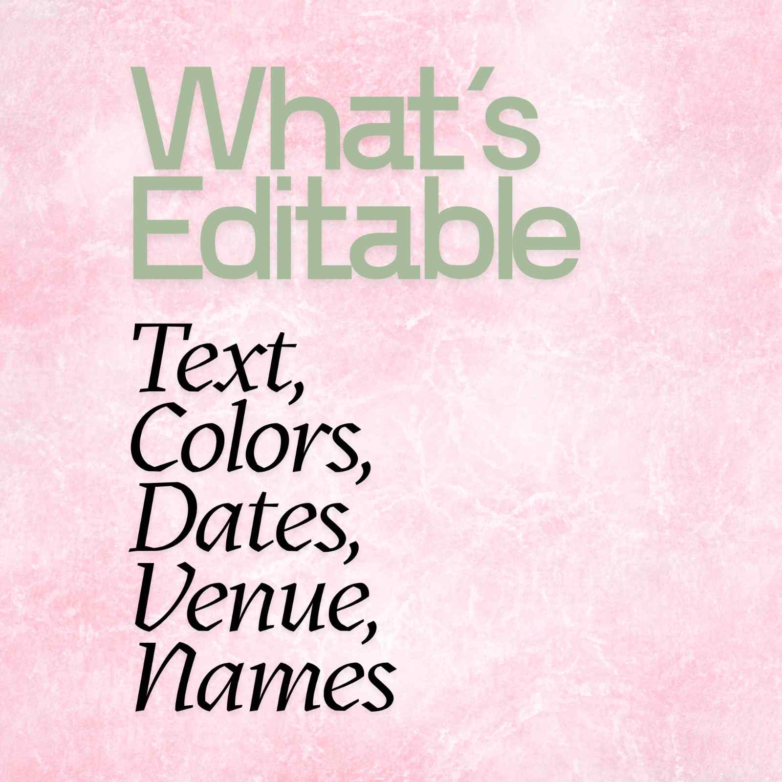 Editable text (name, date, time, venue, message)